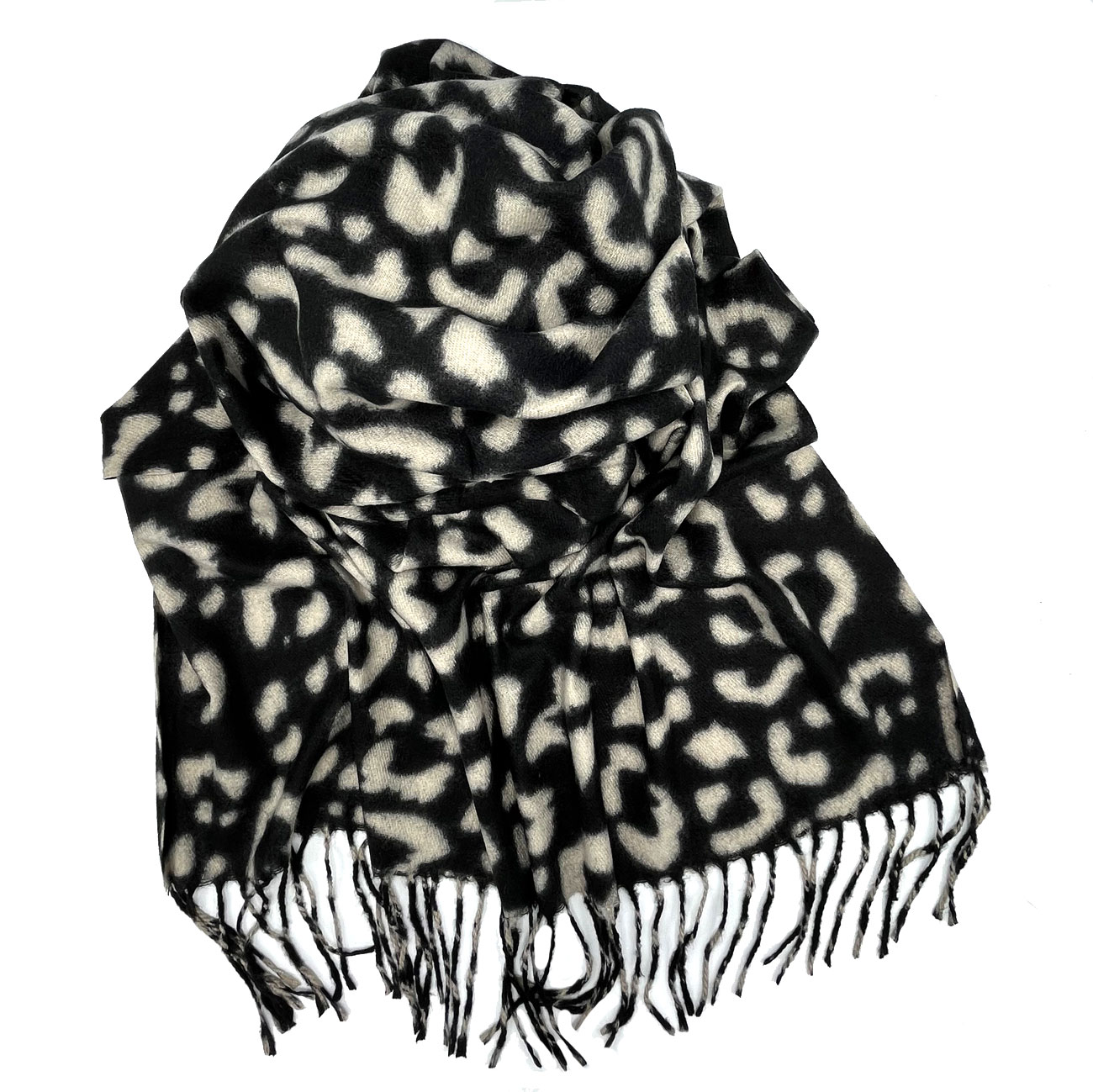 نرم و گرم، با طرح پلنگی و ترکیب رنگی مشکی و استخوانی؛ مناسب استایل پاییزی و شیک