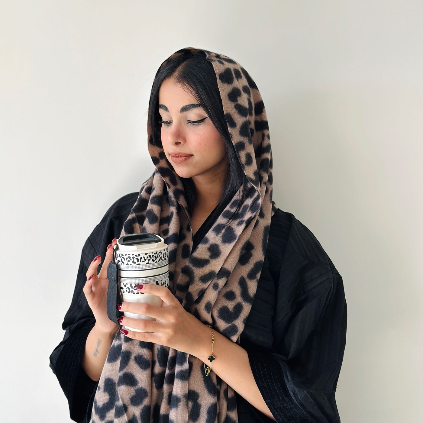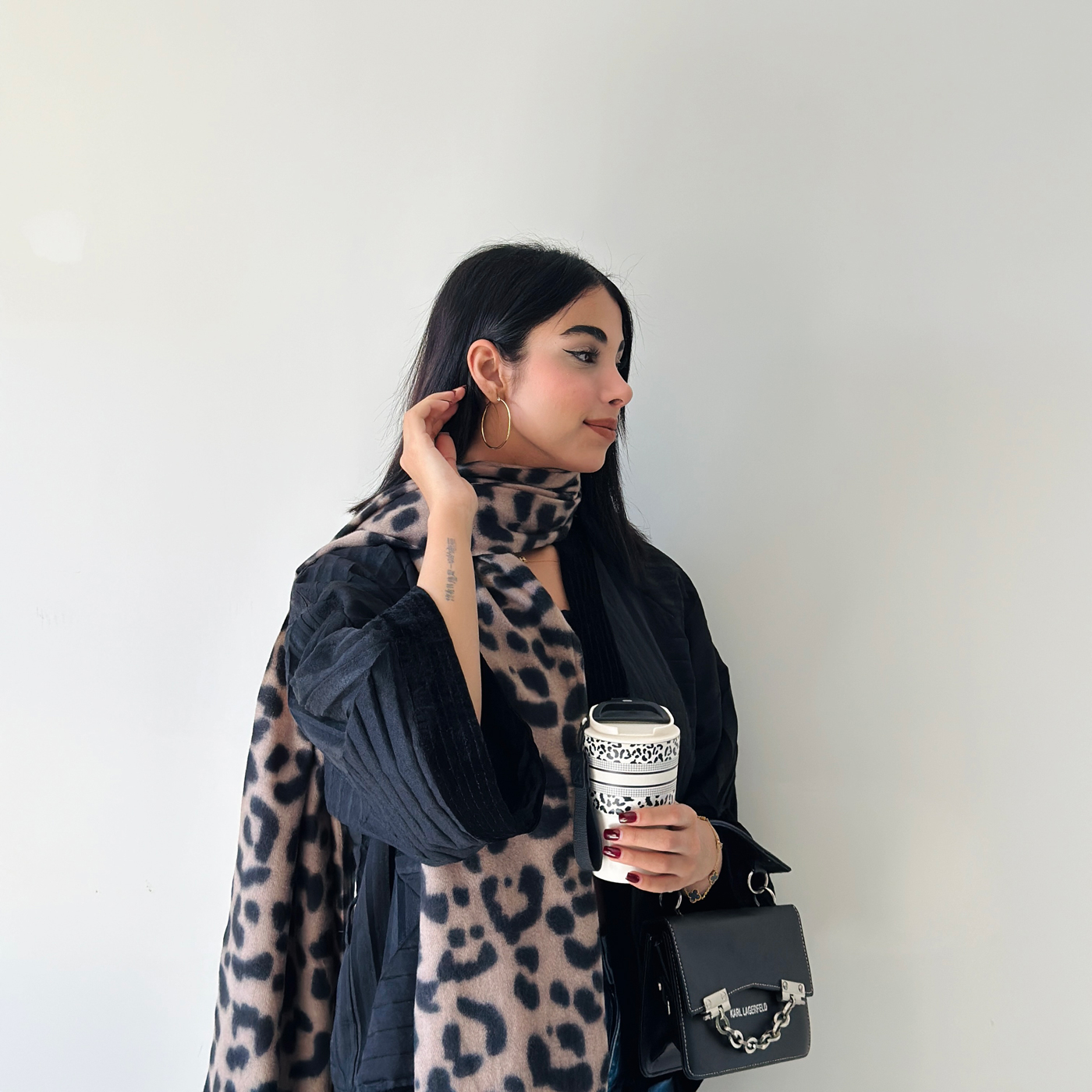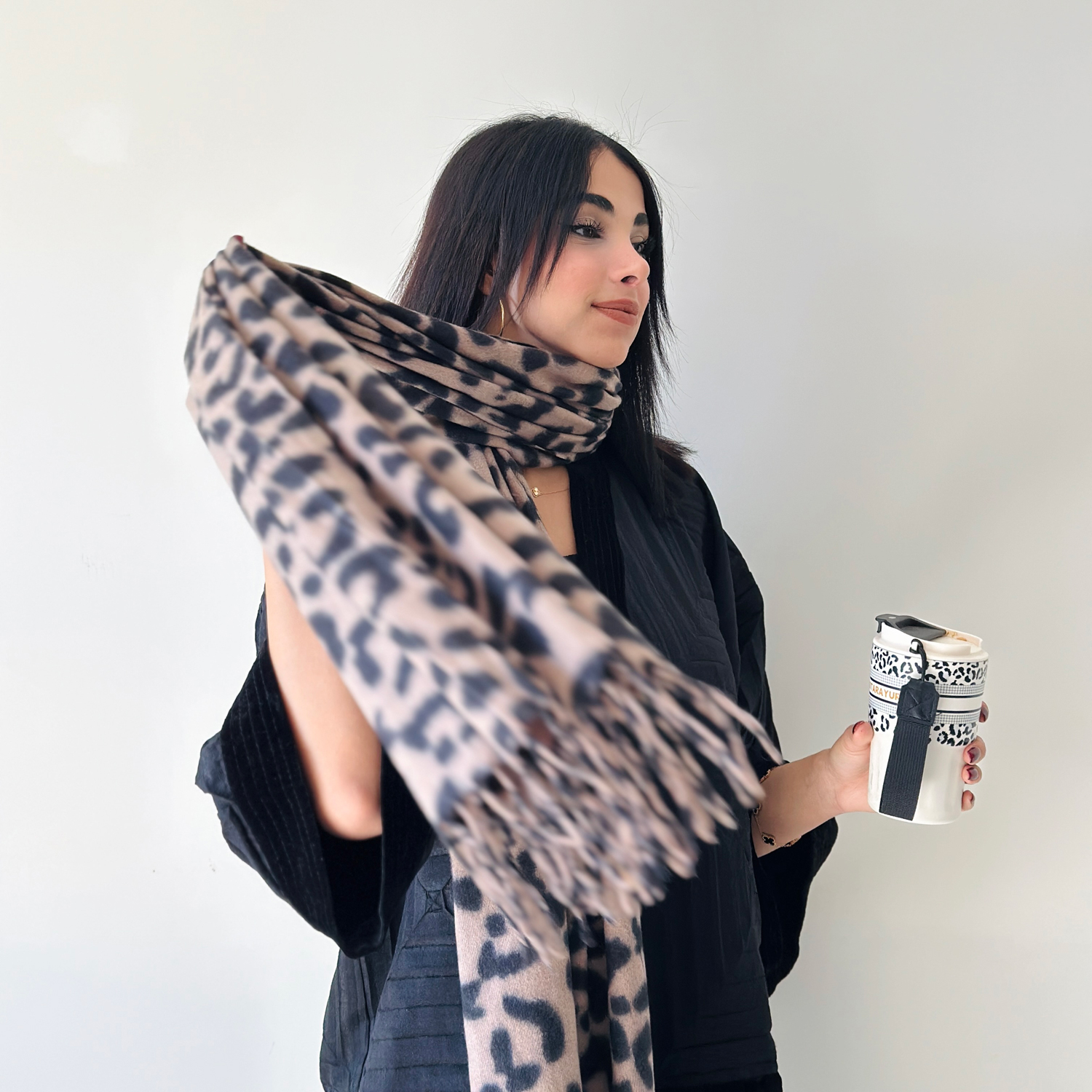 نرم و گرم، با طرح پلنگی و ترکیب رنگ نسکافه‌ای و مشکی؛ مناسب استایل های پاییزی و شیک
