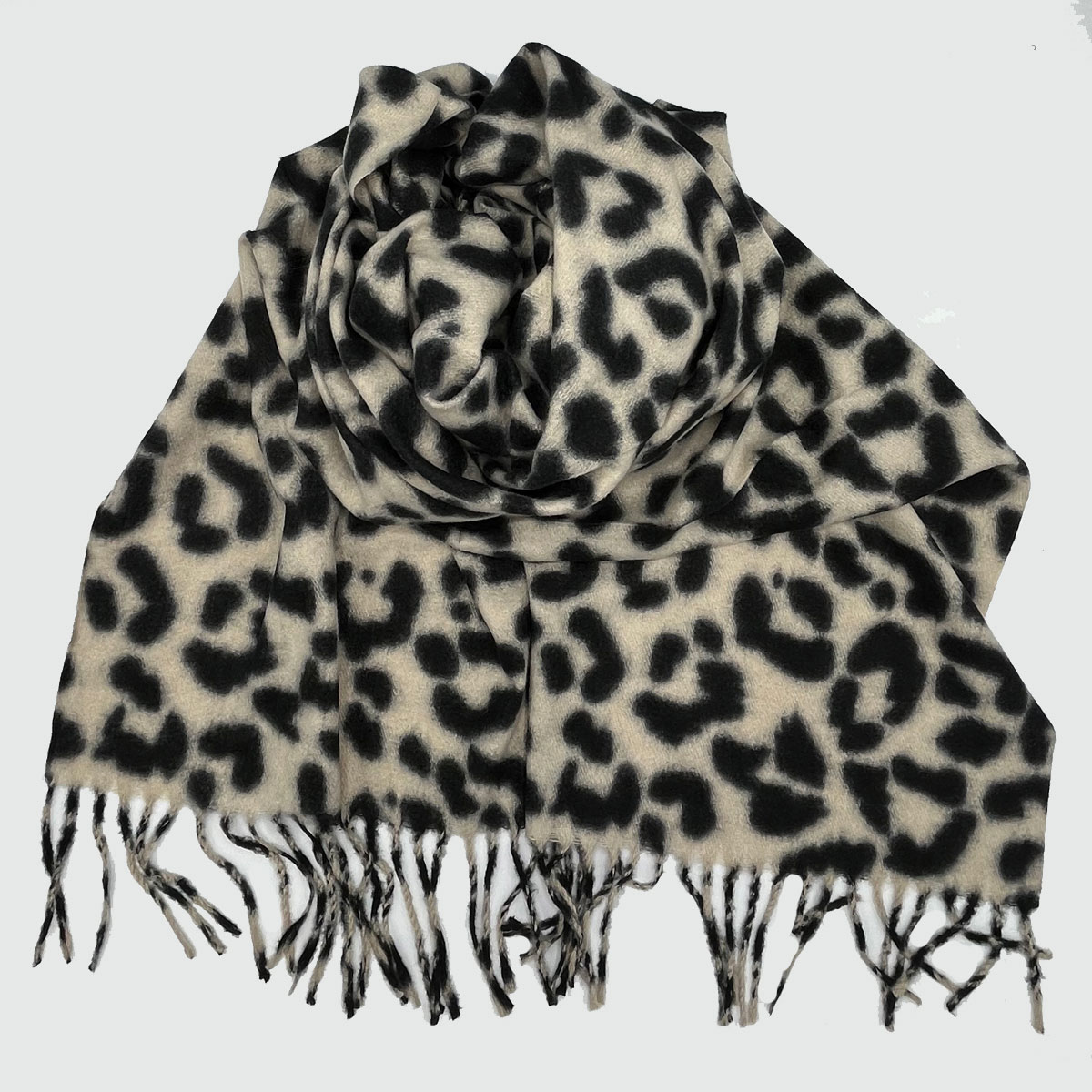 نرم و گرم، با طرح پلنگی و ترکیب رنگ استخوانی و مشکی؛ مناسب استایل پاییزی و شیک