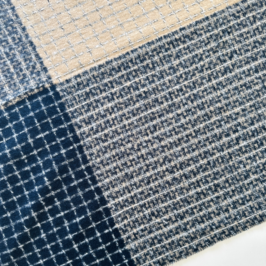 شال چهارخانه پشمی کرم_سورمه‌ای